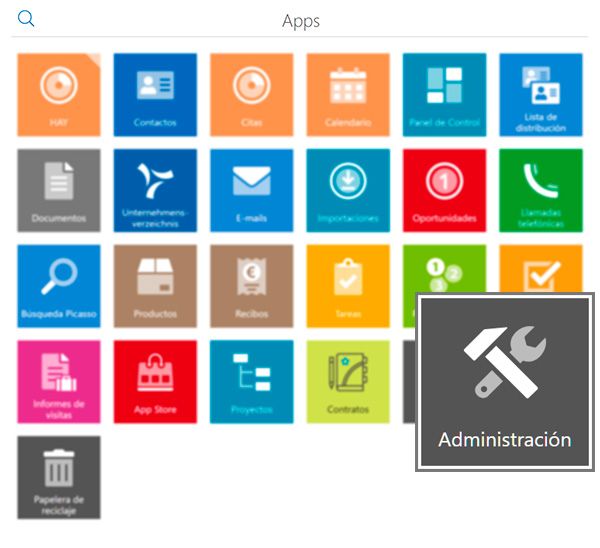 La aplicación Administración sólo está disponible para administradores y usuarios con los derechos adecuados.